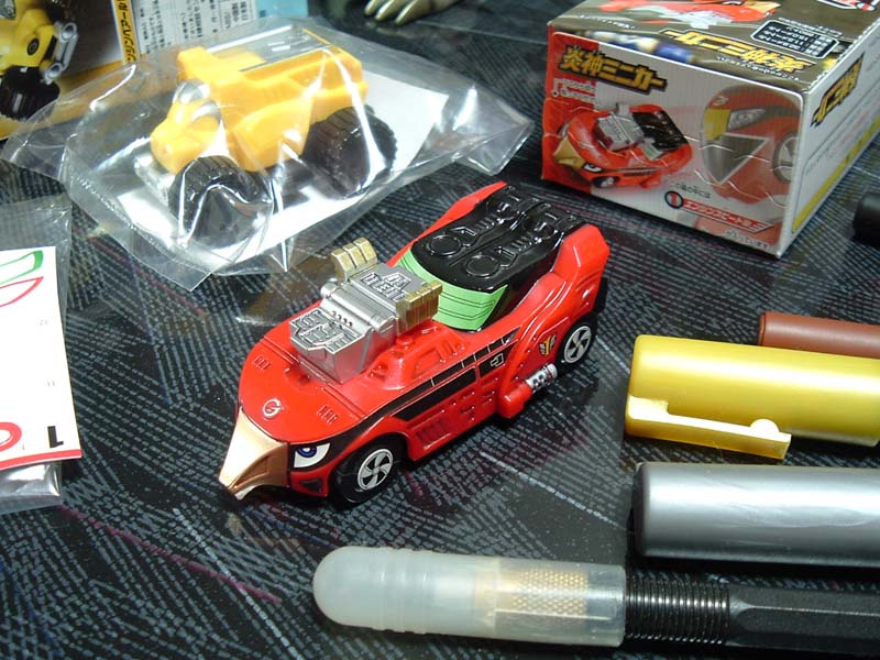食玩炎神ミニカーのエンジンスピードルにスミ入れしてみたのん。 商品自体は組済みで、シールを貼って完成させます。 ギミック等は特に無く、コロ走行のみのそのまんまミニカーです。 せっかくのリアル造形なので全体にスミ入れし、銀でヨゴシも入れ ちょっとだけ部分塗装後にシールを貼った。 なかなかイイ感じですが、シール仕上げなので 安っぽさは抜けません^^; まぁ、200円ですし。 ドルドルドル~~~! 残りは余裕があったら同じように仕上げたい、 エンジンオーが出る前に・・・。