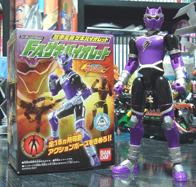 食玩、獣拳変身ゲキバイオレットの FA(ファイティングアクション)ゲキバイオレット購入~。 完成品で入ってるので、シールを貼ってすぐ遊べるv 例によってガンダムマーカーで部分塗装。 顔のラインは失敗するとヤなので省略~。